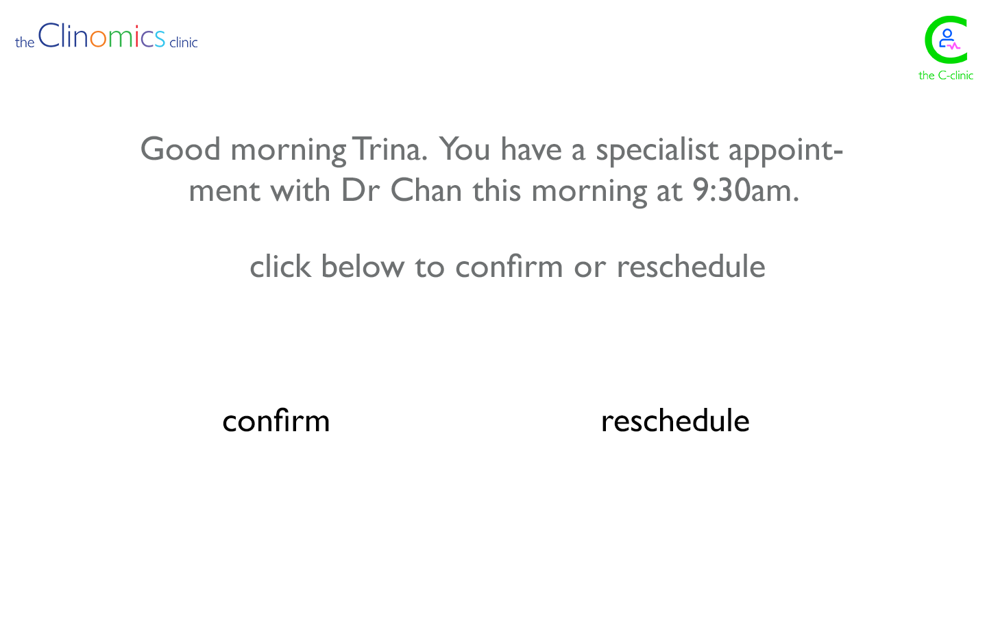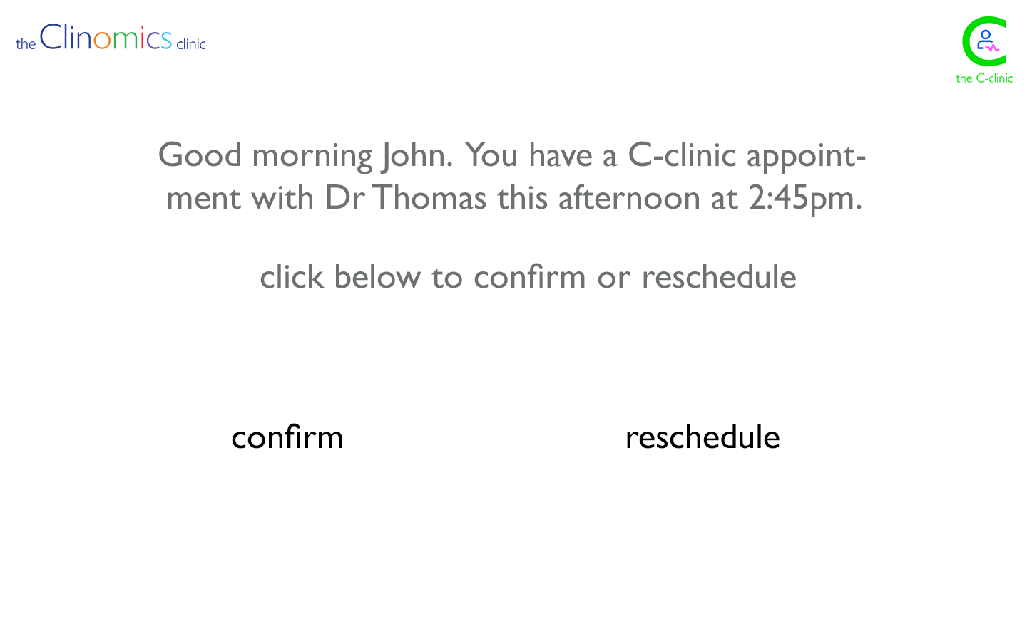 Patients access all the features of the Clinomics clinic via the Clinomics app. Patients are eligible to join after participating in the Acute Care Transition program after a hospital based interaction (ER or hospital discharge). Any healthcare provider can refer you to the ACT program.