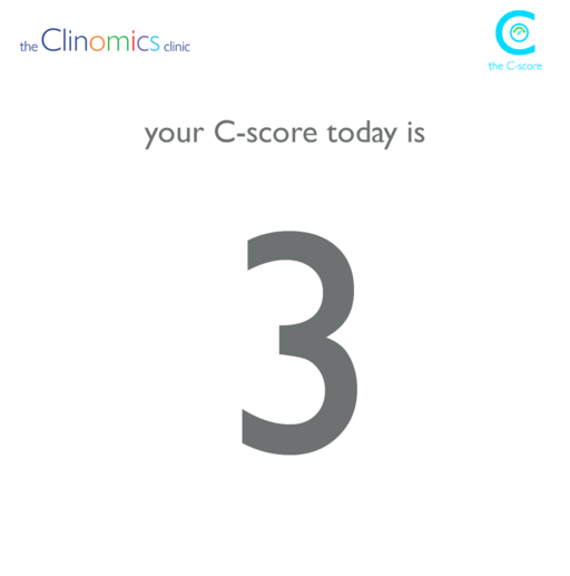 Every time a patient is reviewed by a physician, the patient is assigned a score from 1-6. Clinomics uses an algorithm to adjust the C-score based on a number of factors including physician judgement, symptom scores, lab data, and vital sign data. It acts a a triage tool to help us determine how robust the follow-up needs to be for that individual patient.